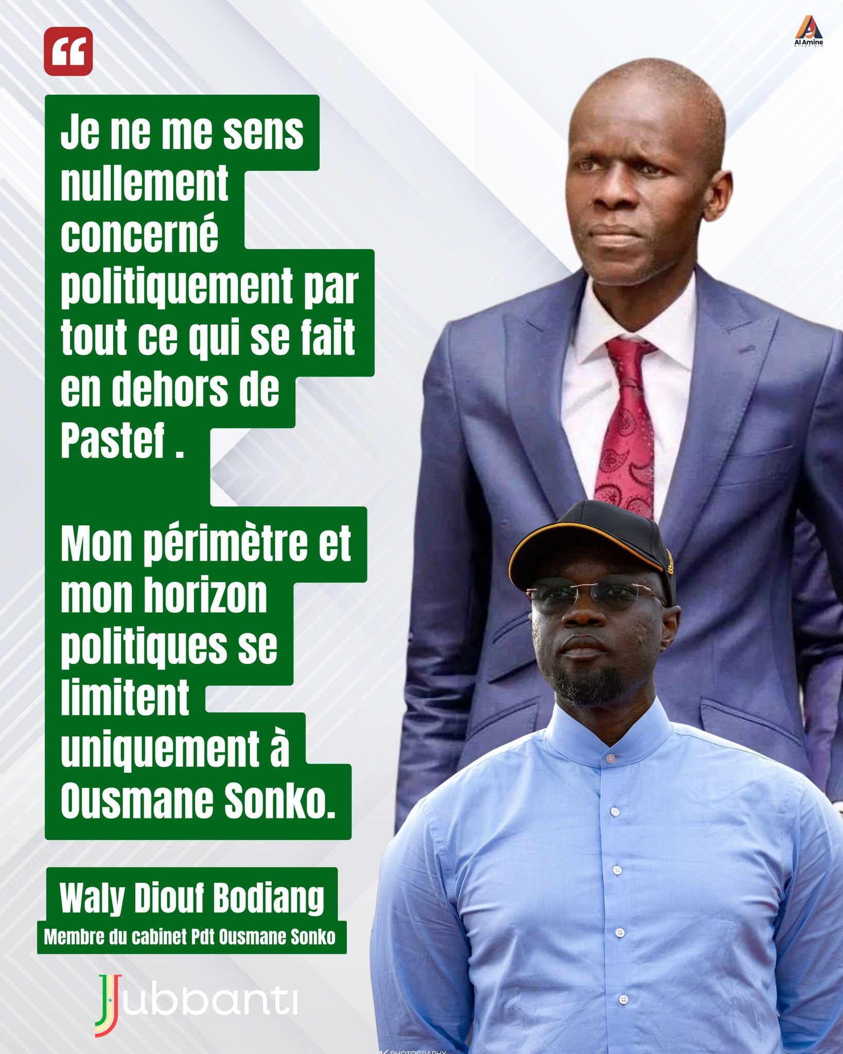 Membre du cabinet d’Ousmane Sonko au sein de Pastef et abonné aux saillies provocatrices – mais parfois absconses –, le président du Port autonome de Dakar, Waly Diouf Bodiang, a lui aussi choisi son camp. « Je ne me sens nullement concerné politiquement par tout ce qui se fait en dehors de Pastef. Mon périmètre et mon horizon politiques se limitent uniquement à Ousmane Sonko », lâche-t-il sur X, signifiant à mots couverts que son allégeance va en premier lieu à son parti et à celui qui le dirige.