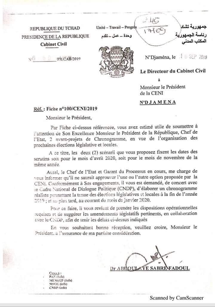 18 septembre 2019 #TCHAD #Elections législatifs : Idriss Déby tance l’opposition à respecter le chronogramme avec le CNDP et selon les engagements qu’il aurait pris.
