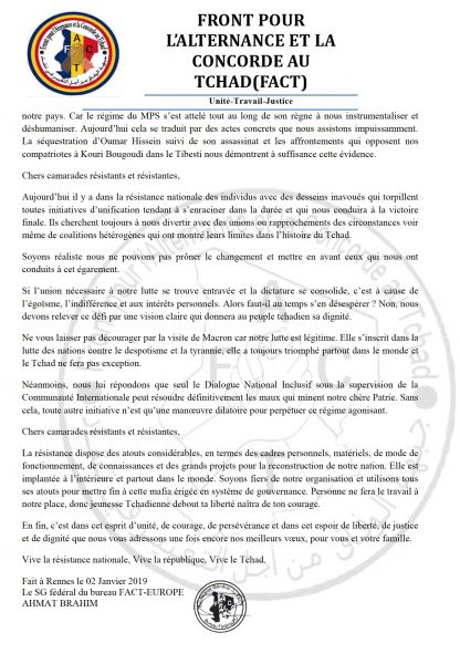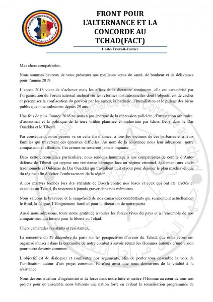 5 janvier 2019 #TCHAD #Opposition : Le bureau du FACT Europe présente ses voeux aux Tchadiens.